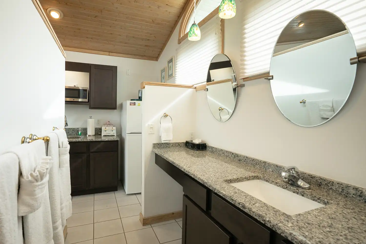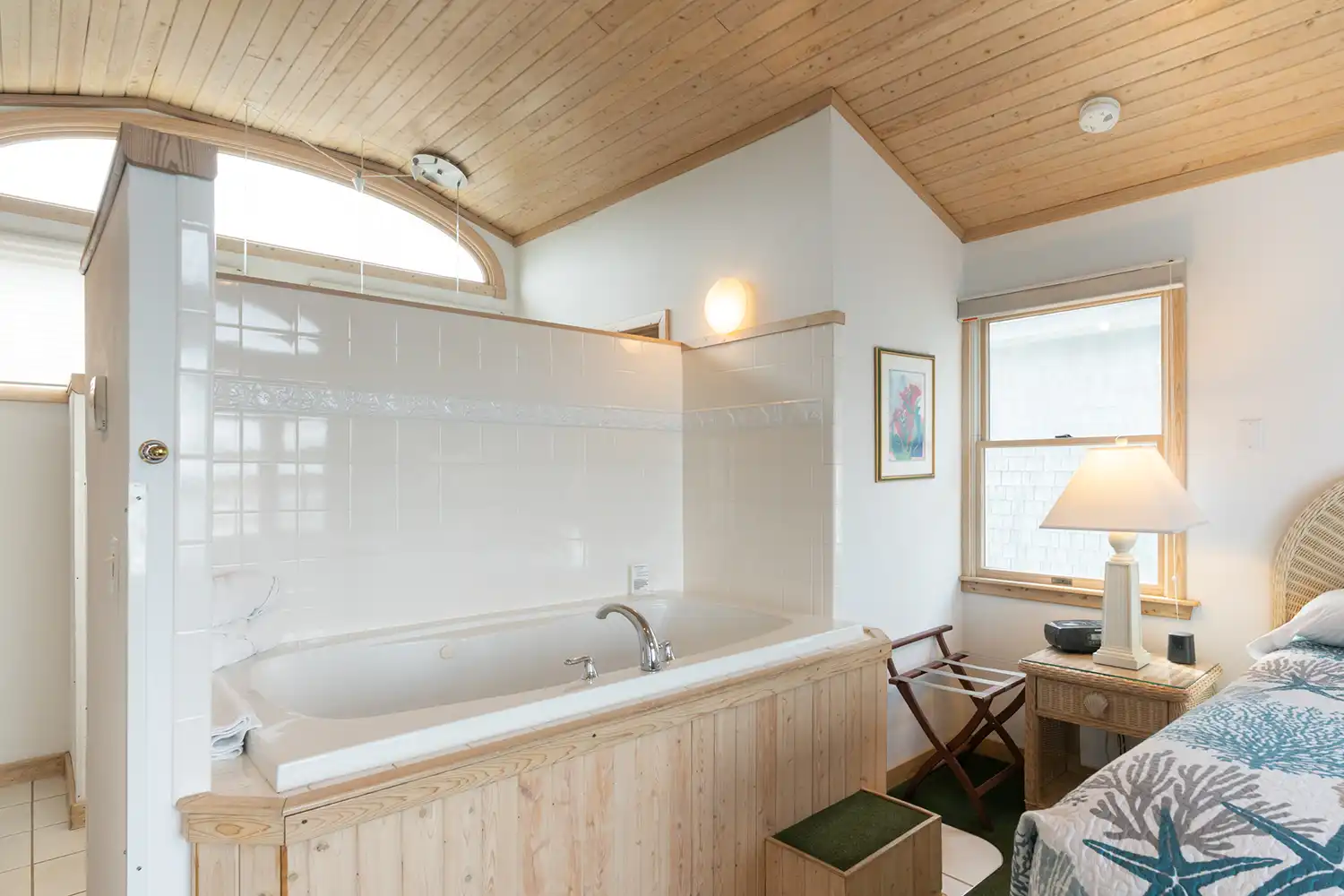 Jacuzzi or whirlpool tub, plus a well-equipped kitchenette