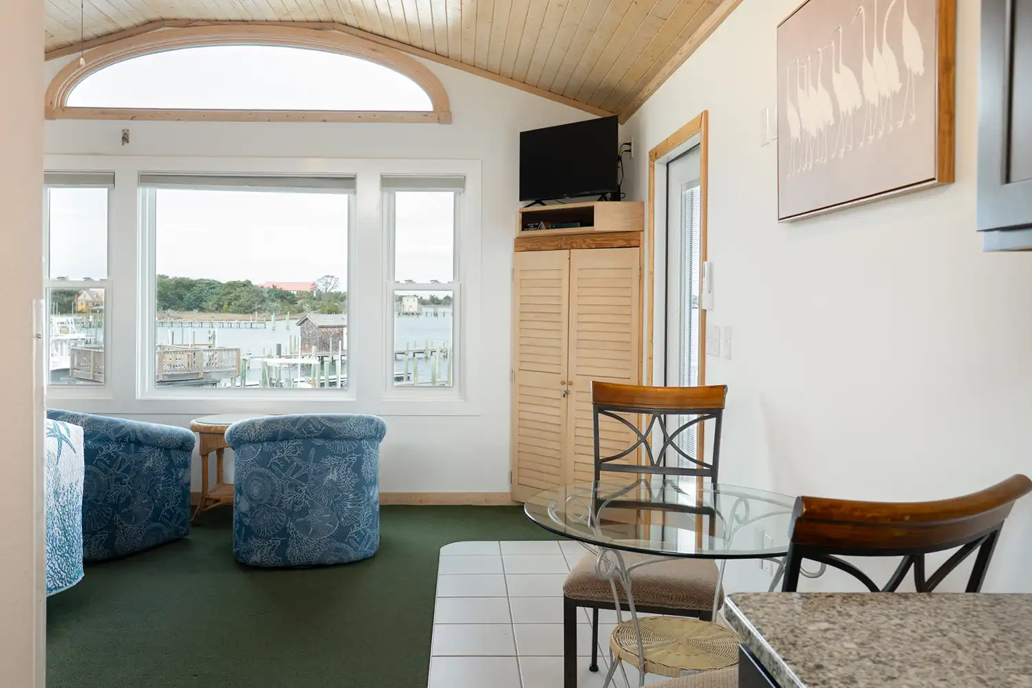 We offer a delightful continental breakfast in our sunny lobby or dockside at the water’s edge.